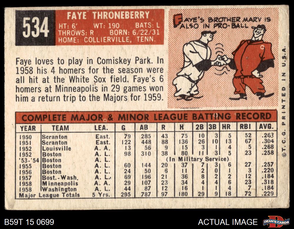 1959 Topps #534 Faye Throneberry 3 - VG