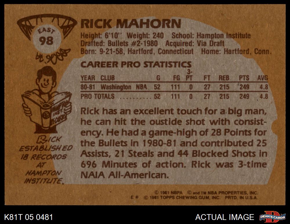 1981 Topps #98 E Rick Mahorn 8 - NM/MT