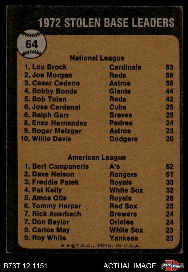 1973 Topps #64 - Lou Brock / Bert Campaneris SB Leaders 3.5 - VG+