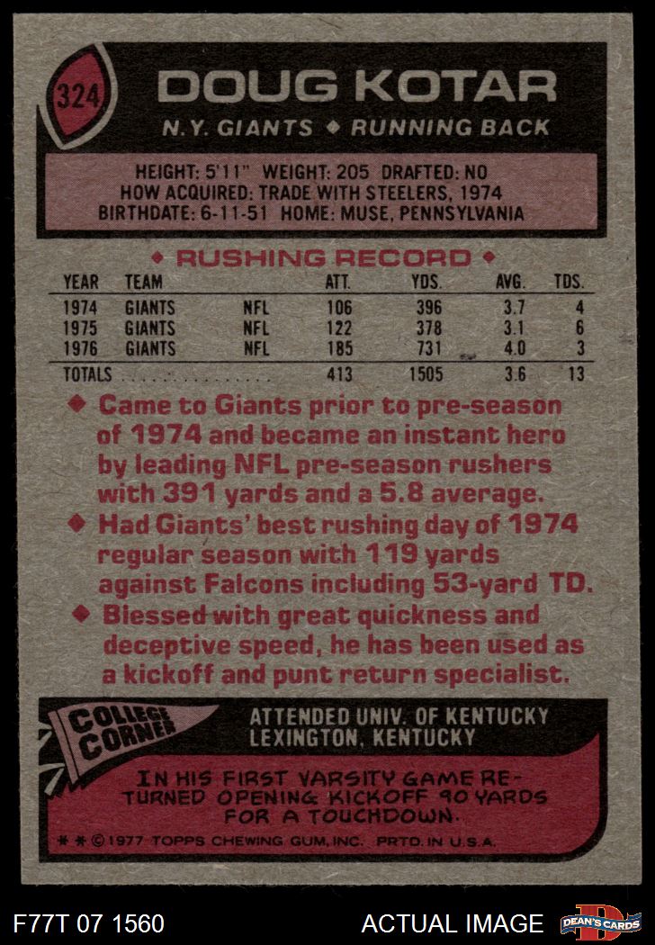 1977 Topps #324 Doug Kotar
