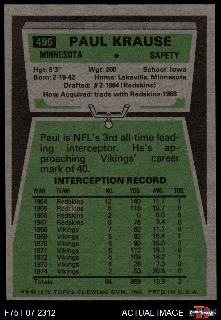 1975 Topps #496 Paul Krause