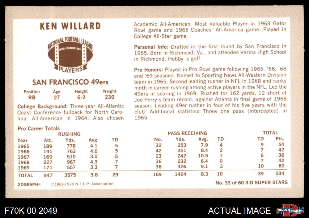1970 Kellogg's #33 Ken Willard