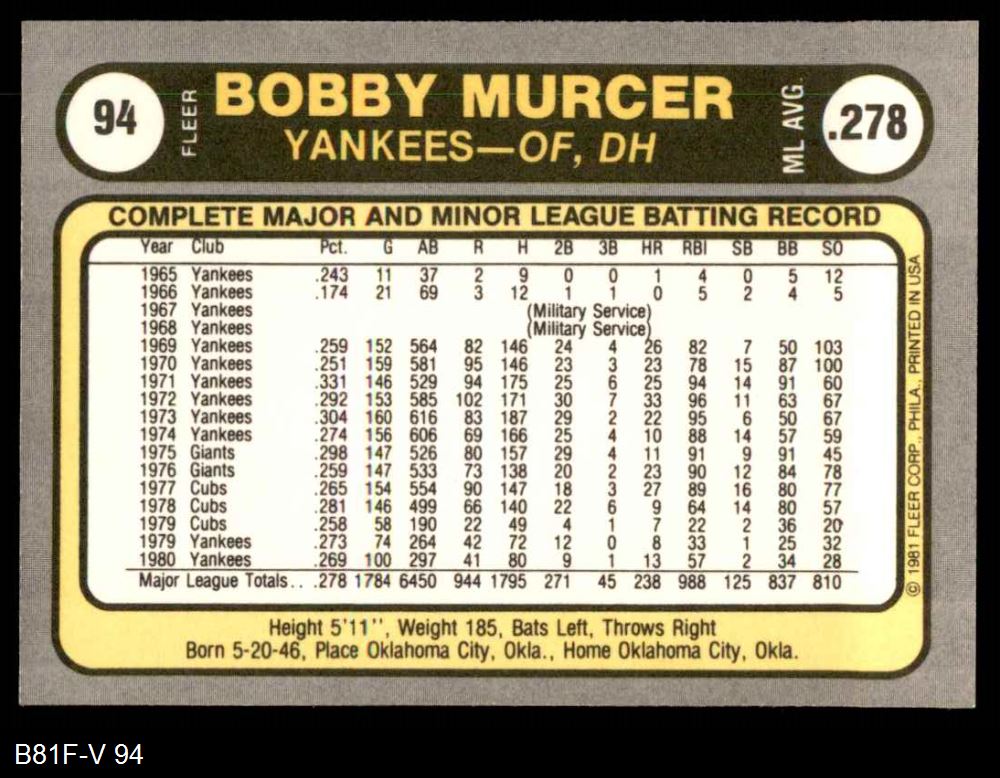 1981 Fleer Baseball Cards (4,688 available)1981 Fleer Yankees (186 available)