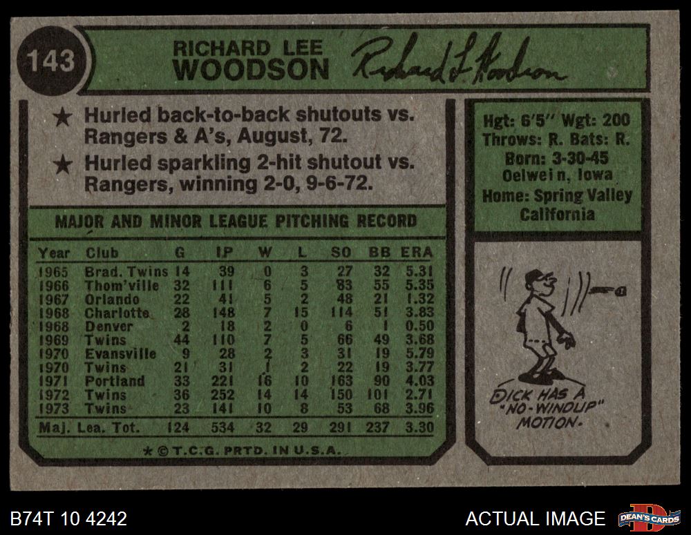 1974 Topps #143 Dick Woodson 4 - VG/EX