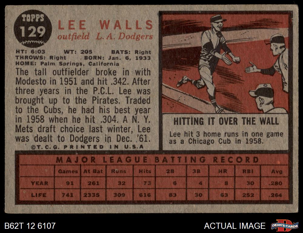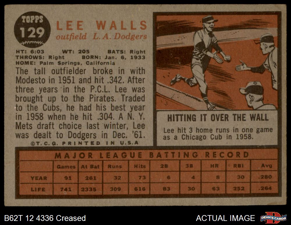 1962 Topps #129 NRM Lee Walls 1.5 - FAIR