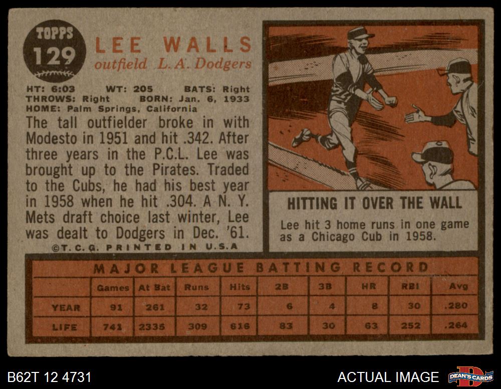 1962 Topps #129 NRM Lee Walls 4 - VG/EX