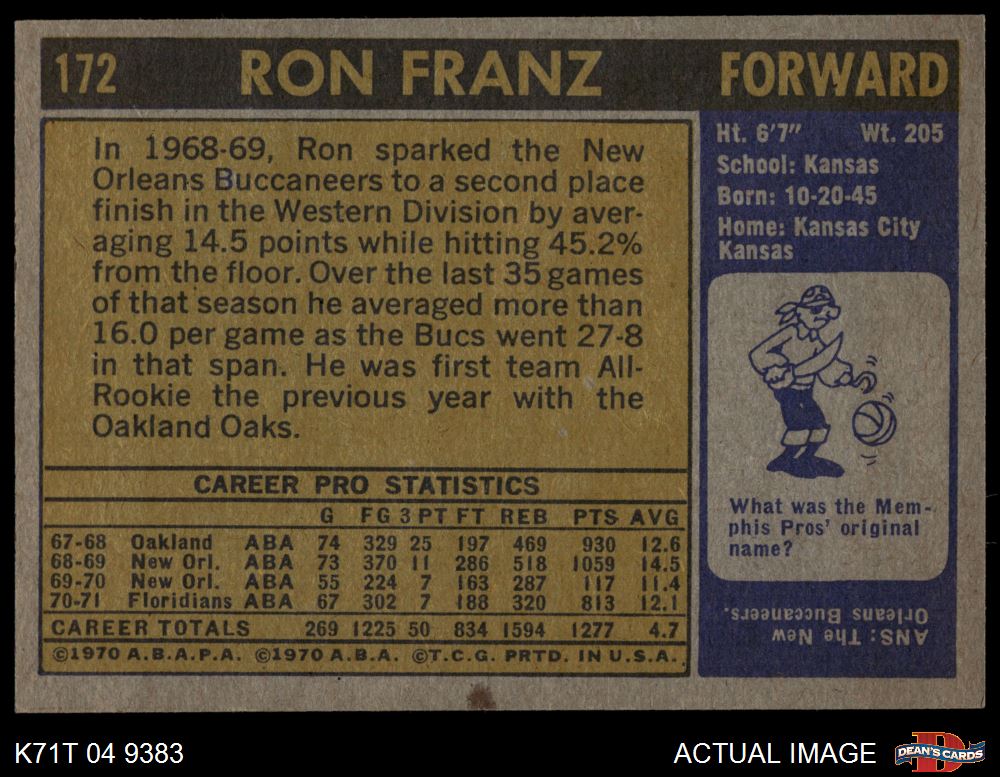 1971 Topps #172 Ron Franz 4 - VG/EX