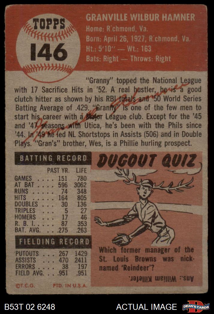 1953 Topps #146 Granny Hamner 2 - GOOD