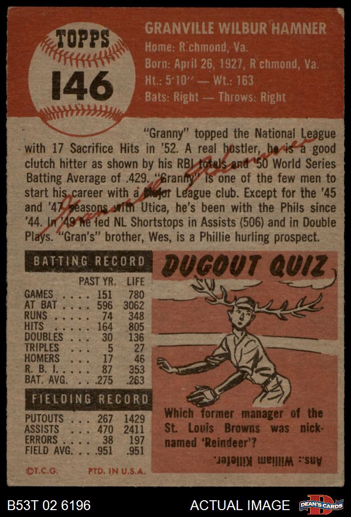 1953 Topps #146 Granny Hamner 4 - VG/EX