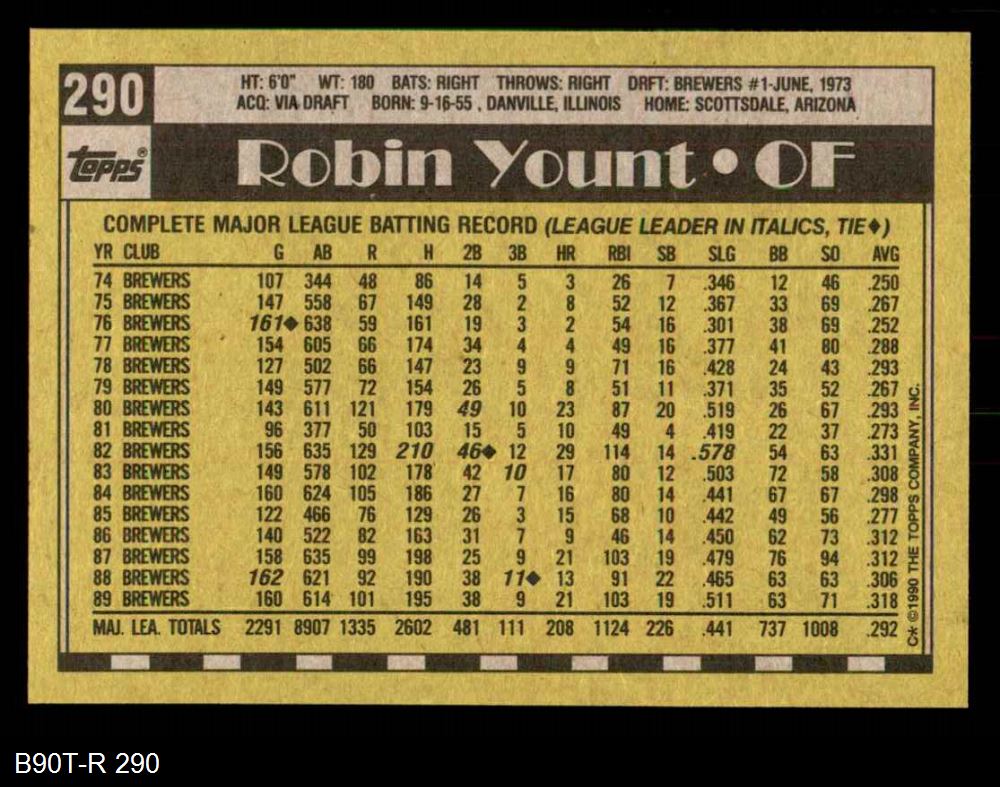 1990 Topps #290 Robin Yount
