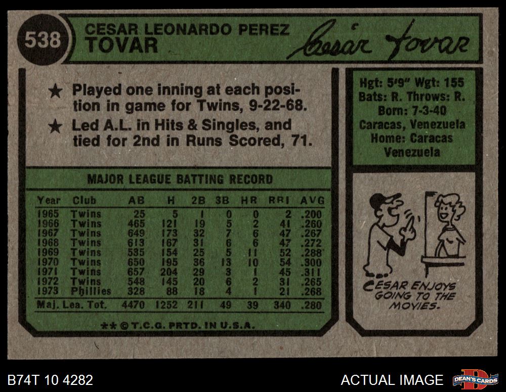 1974 Topps #538 Cesar Tovar 7.5 - NM+