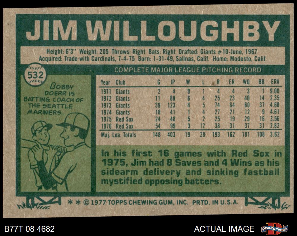 1977 Topps #532 Jim Willoughby 3 - VG