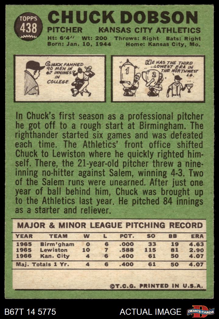 1967 Topps #438 Chuck Dobson 5.5 - EX+