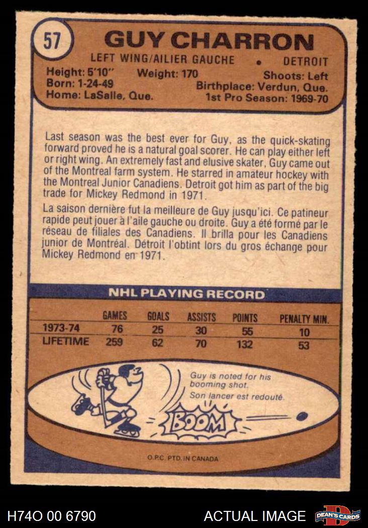 1974 O-Pee-Chee NHL #57 Guy Charron 5 - EX