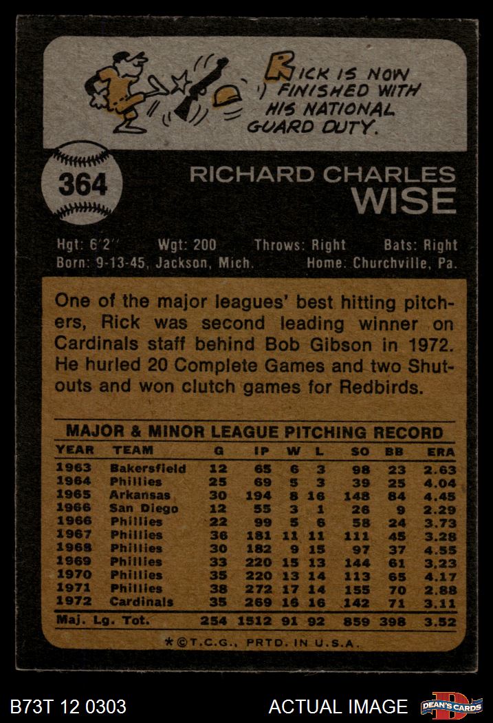 1973 Topps #364 Rick Wise