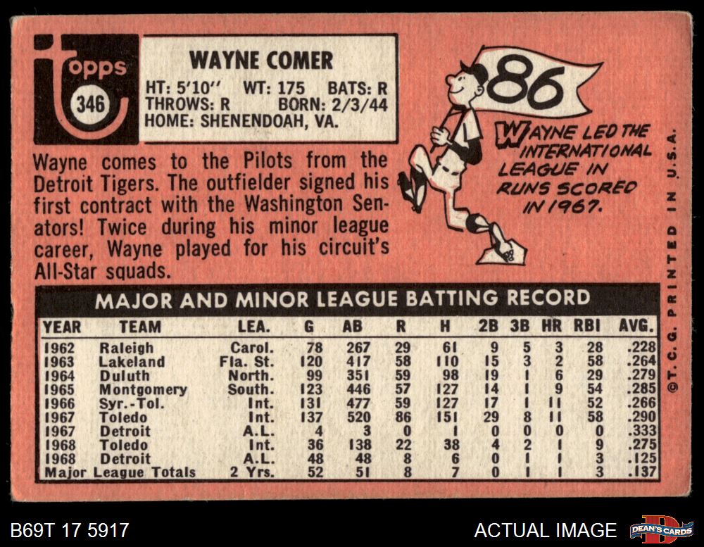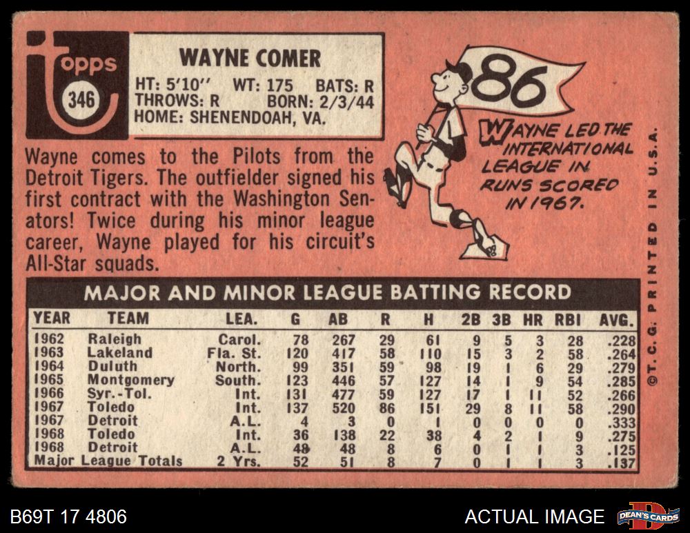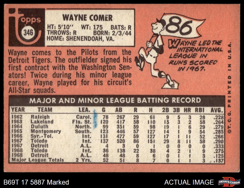 1969 Topps #346 Wayne Comer 1.5 - FAIR