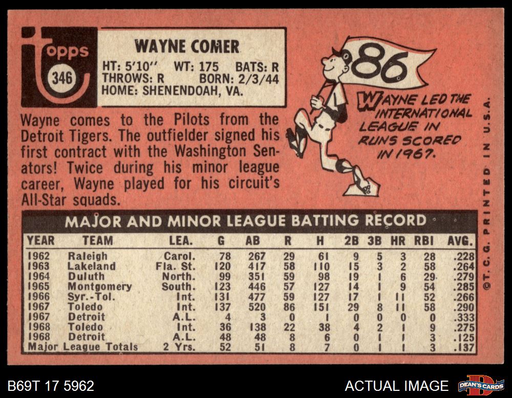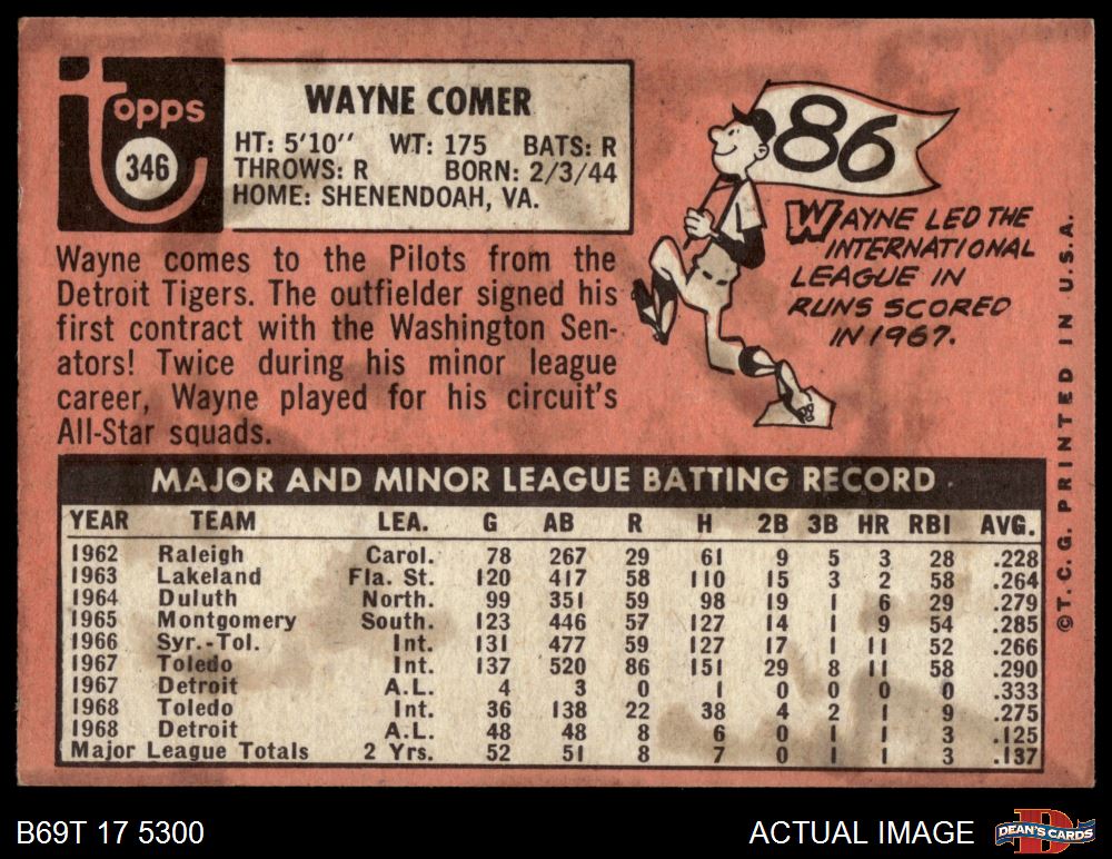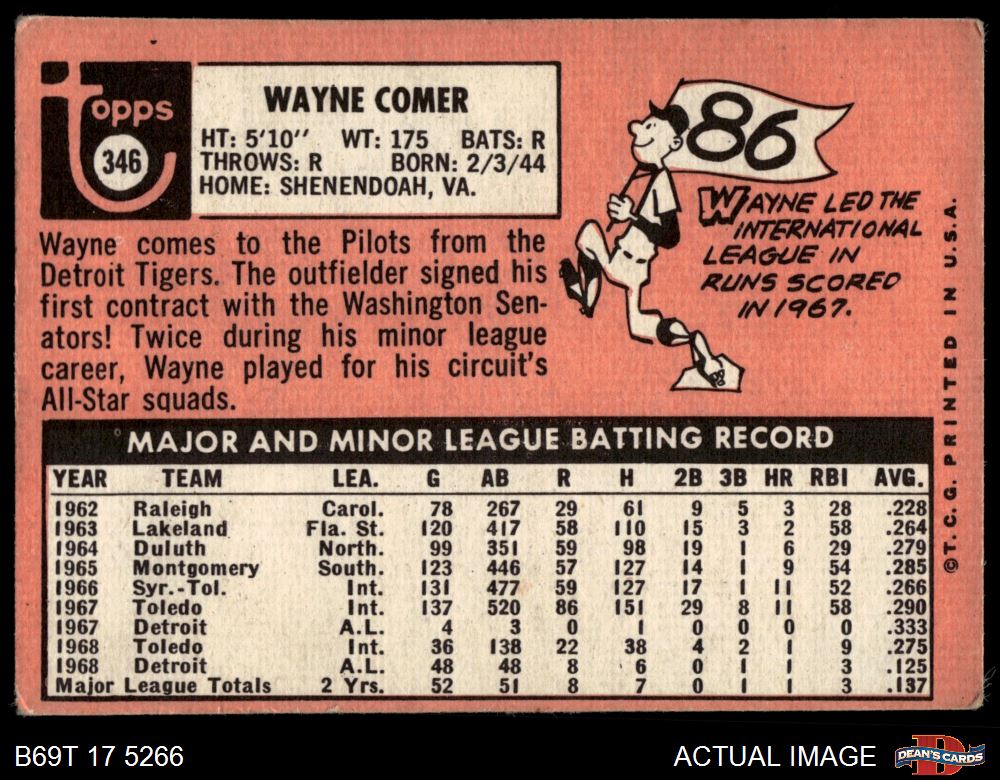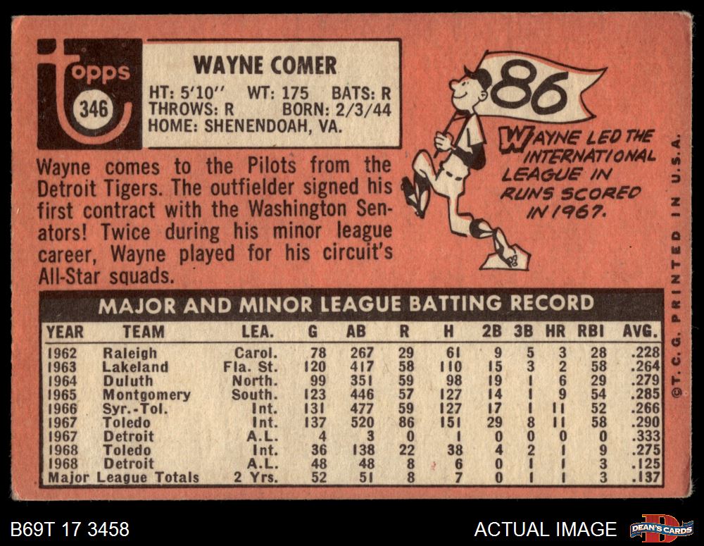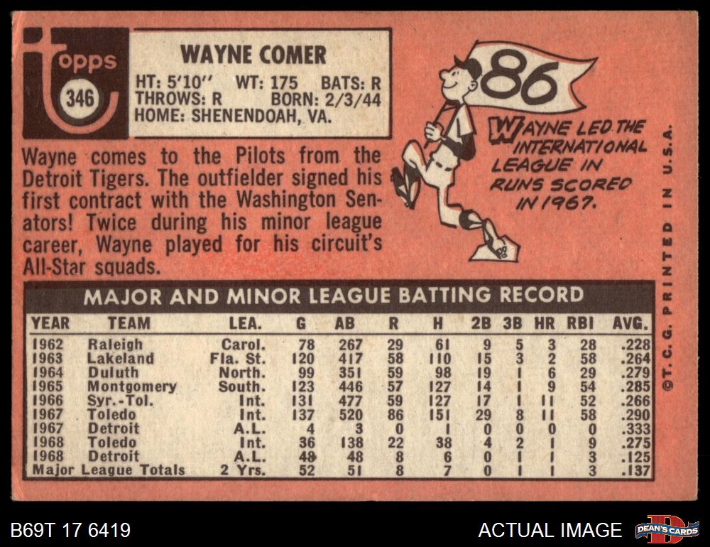 1969 Topps #346 Wayne Comer