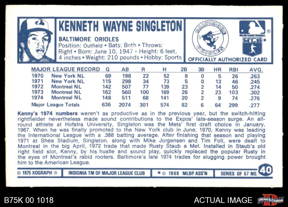 1975 Kellogg's #40 Ken Singleton 7 - NM