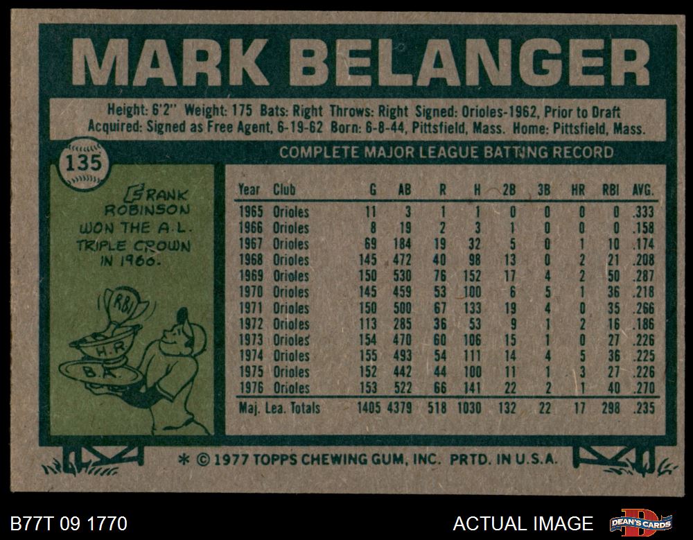1977 Topps #135 Mark Belanger 4 - VG/EX
