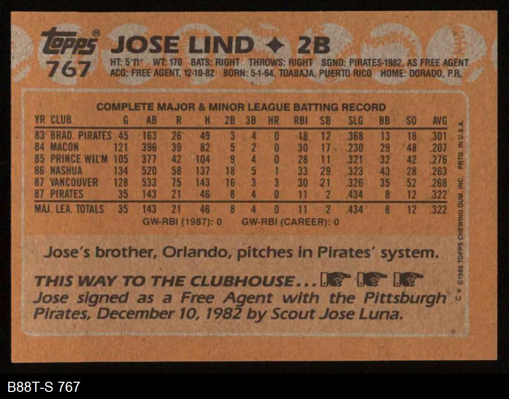 1988 Topps #767 Jose Lind