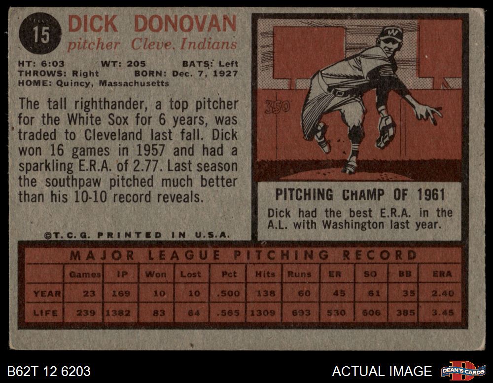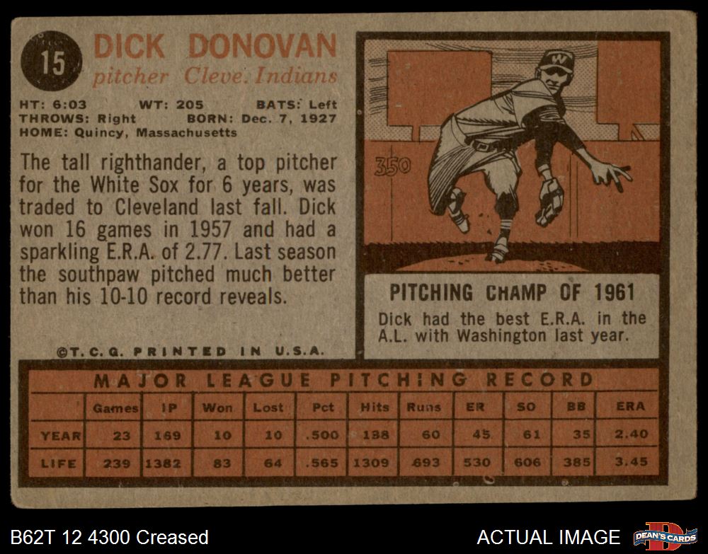 1962 Topps #15 Dick Donovan 1.5 - FAIR
