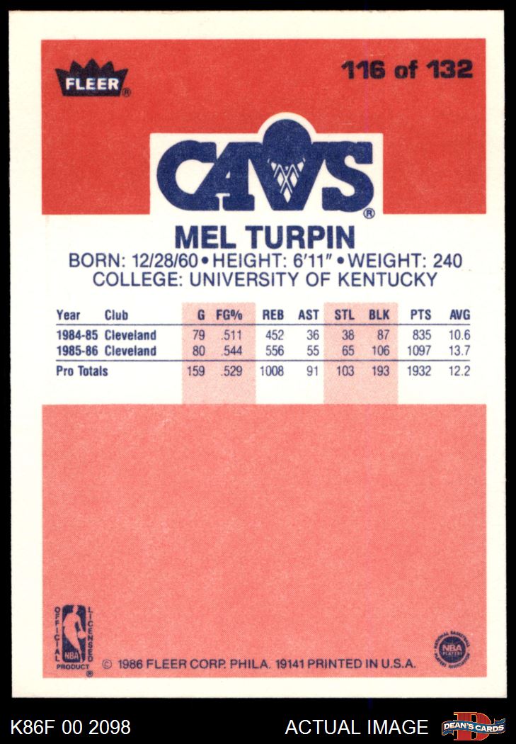1986 Fleer #116 Melvin Turpin 8 - NM/MT