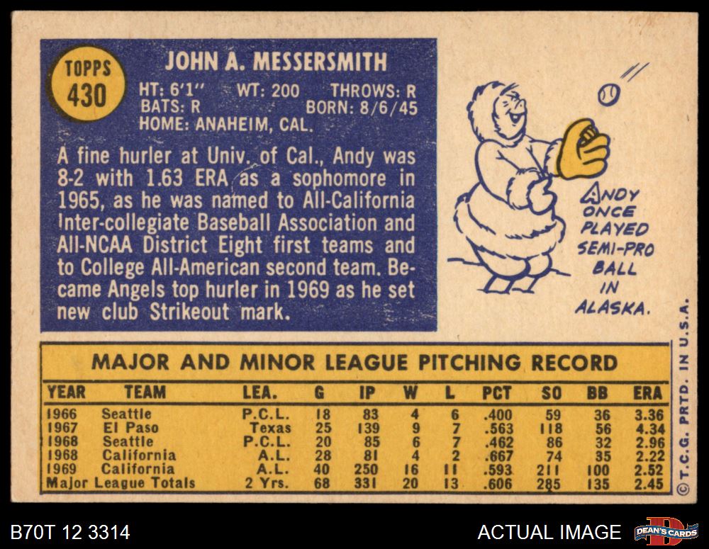 1970 Topps #430 Andy Messersmith 4 - VG/EX