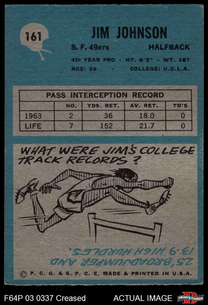 1964 Philadelphia #161 Jimmy Johnson 3 - VG