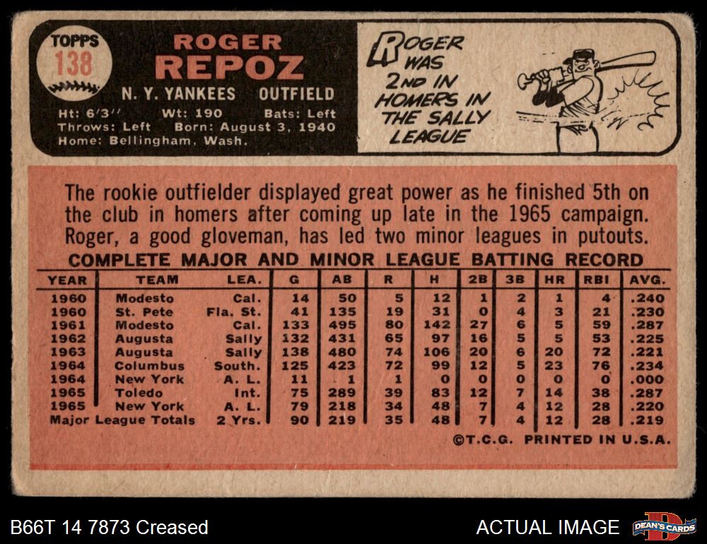 1966 Topps #138 Roger Repoz
