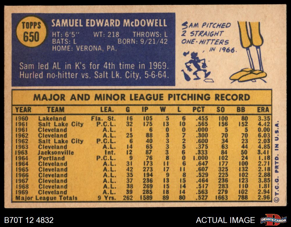 1970 Topps #650 Sam McDowell 6 - EX/MT