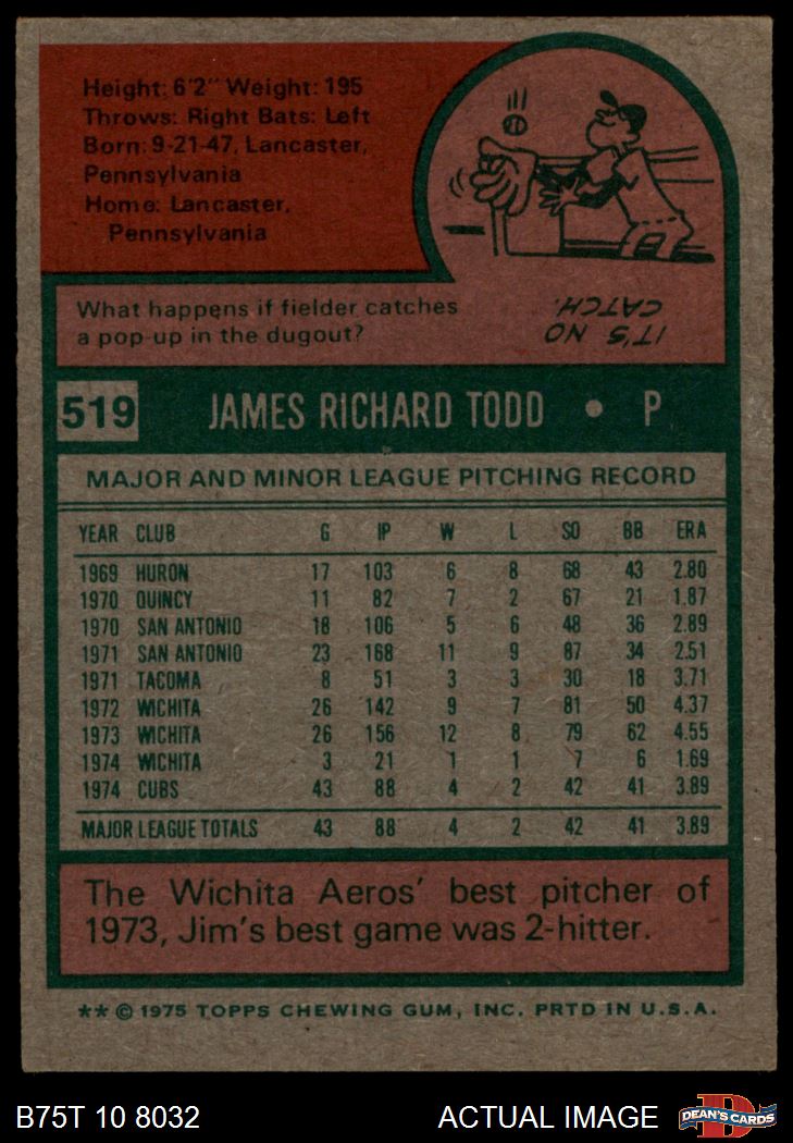 1975 Topps #519 Jim Todd 7 - NM
