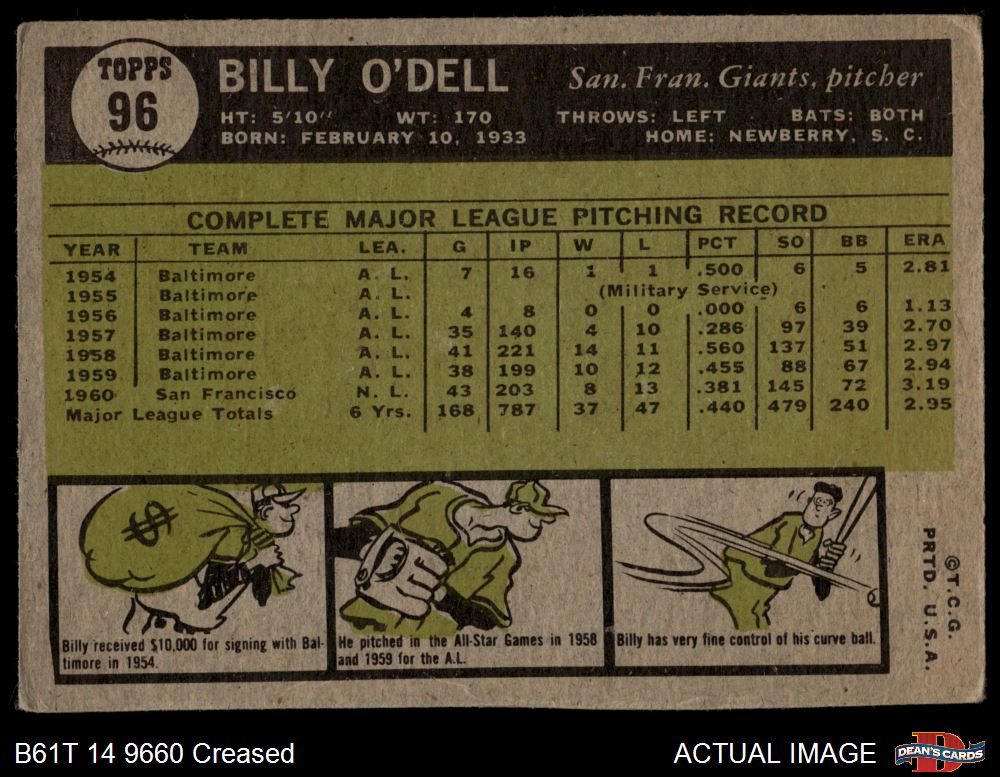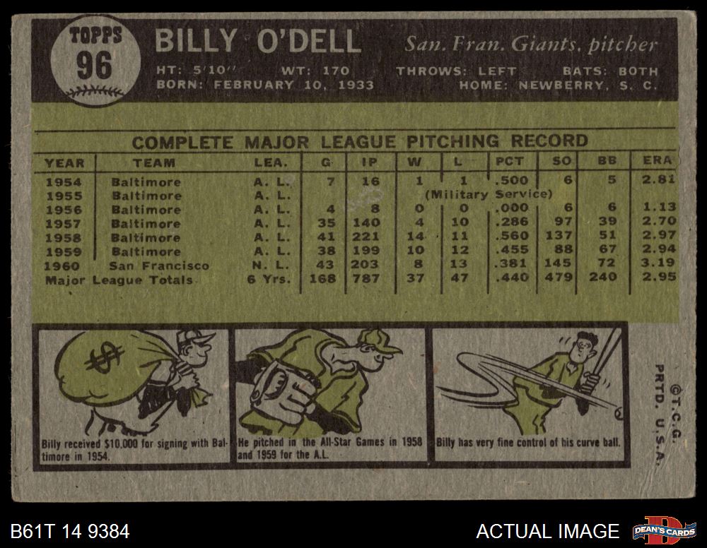 1961 Topps #96 Billy O'Dell 2 - GOOD