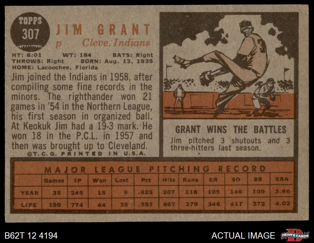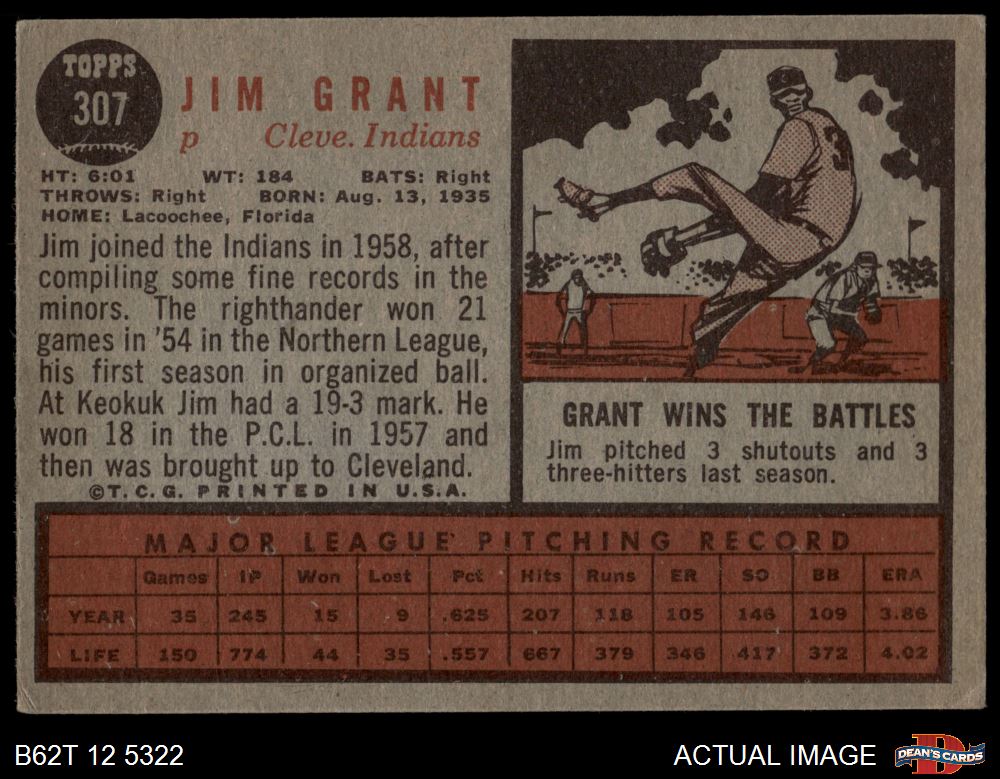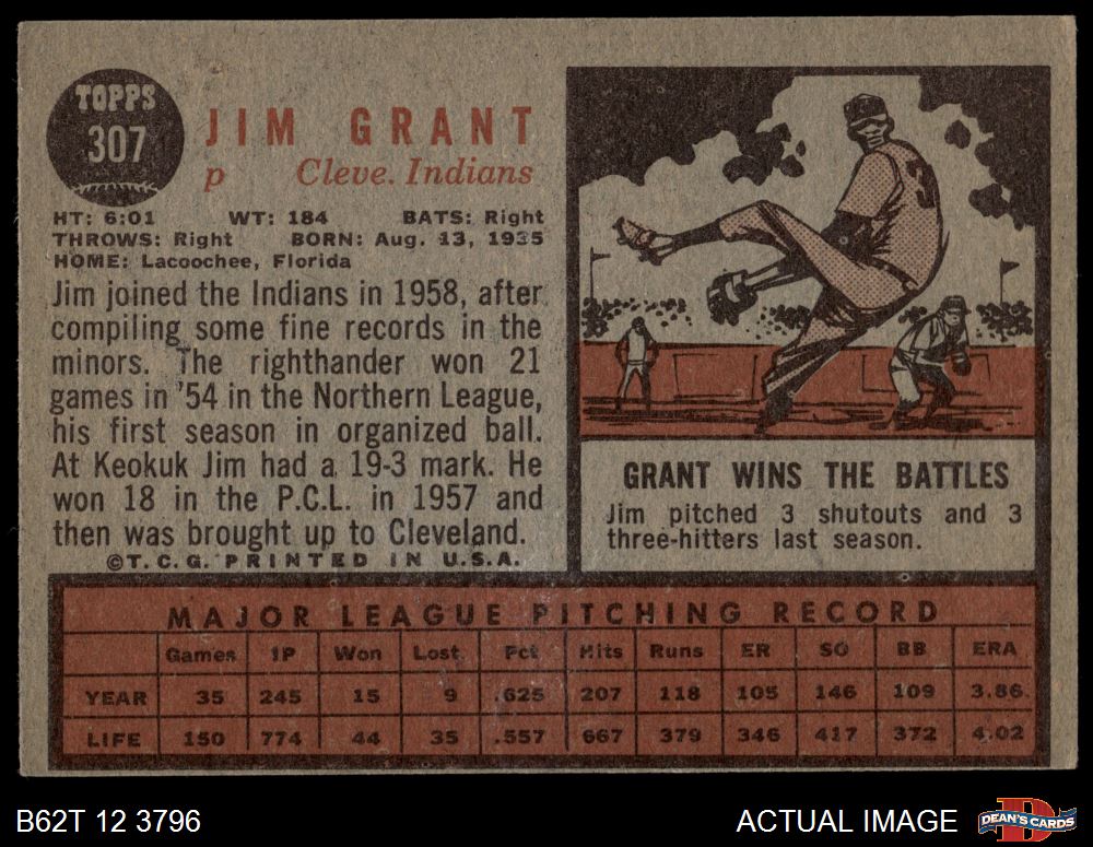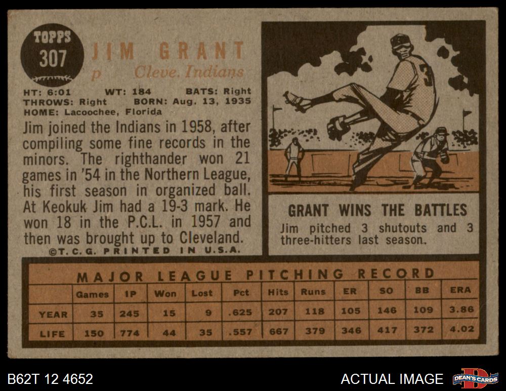 1962 Topps #307 Jim Grant 3 - VG