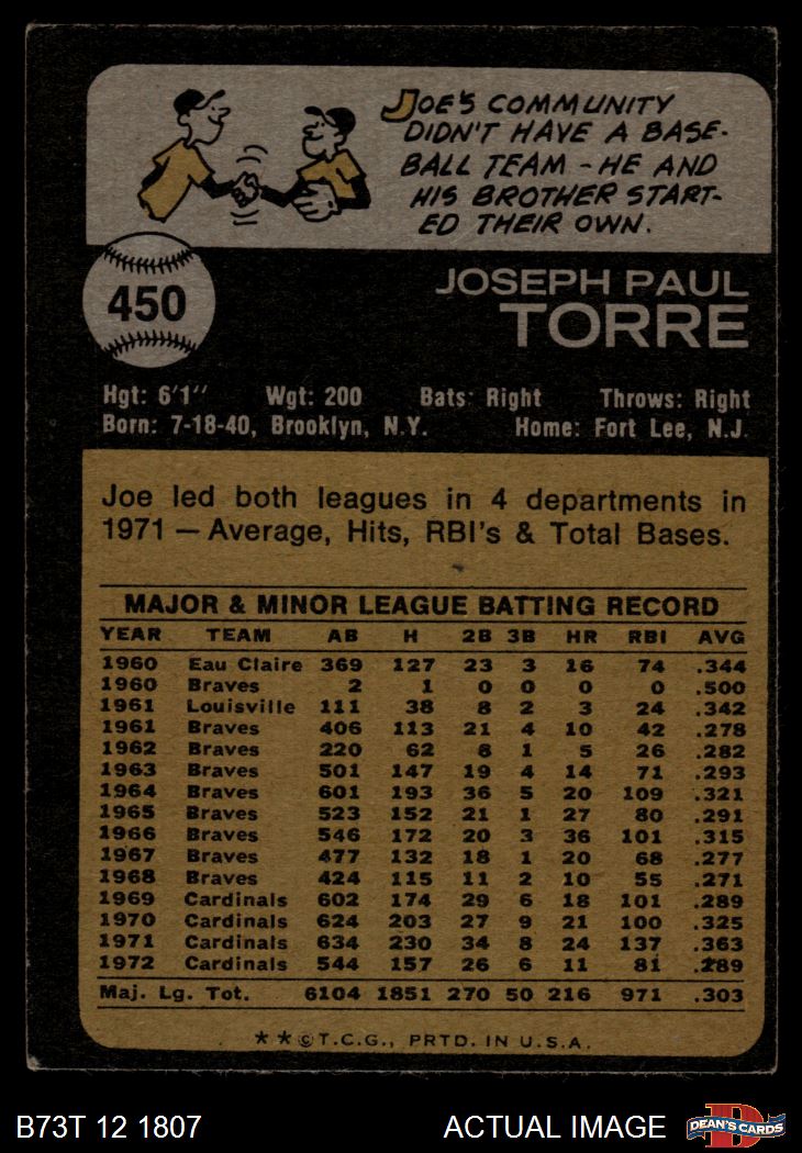 1973 Topps #450 Joe Torre 3 - VG