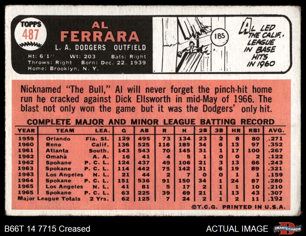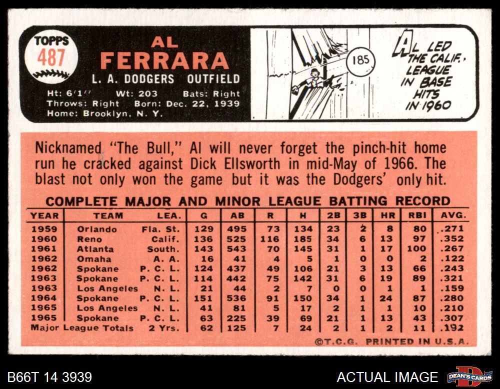 1966 Topps #487 Al Ferrara
