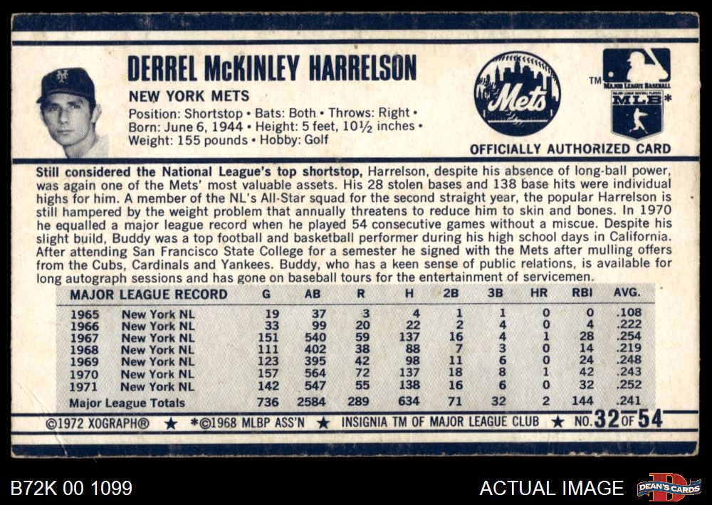 1972 Kellogg's #32 Bud Harrelson 4 - VG/EX