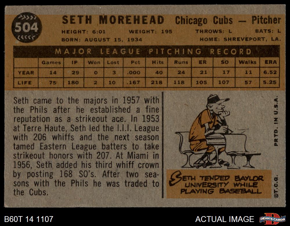 1960 Topps #504 Seth Morehead 5 - EX