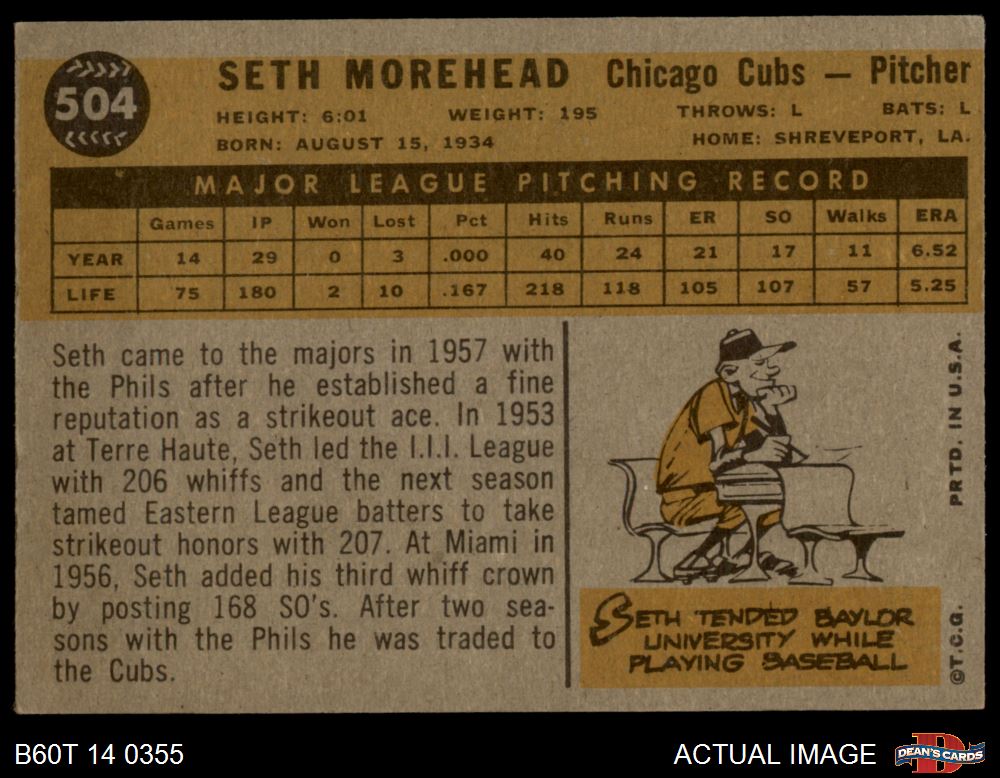1960 Topps #504 Seth Morehead 5.5 - EX+