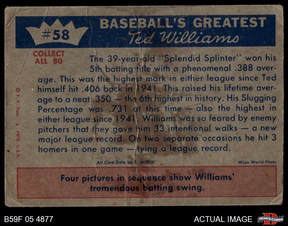 1959 Fleer #58 - Ted Williams Hits .388 1 - POOR