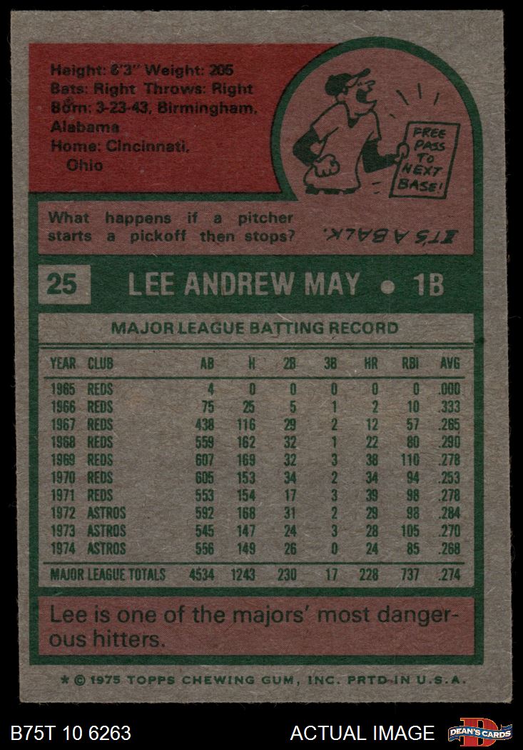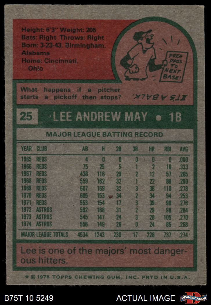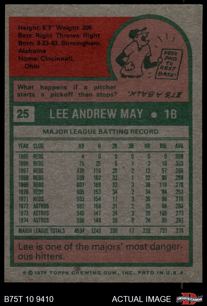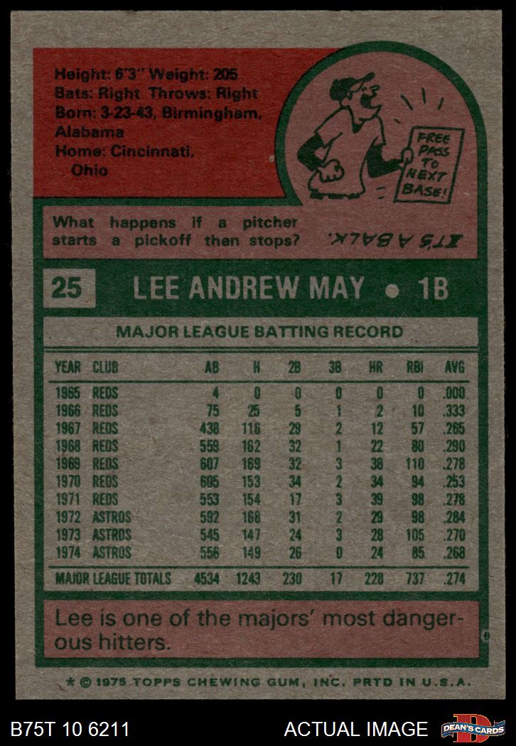 1975 Topps #25 Lee May