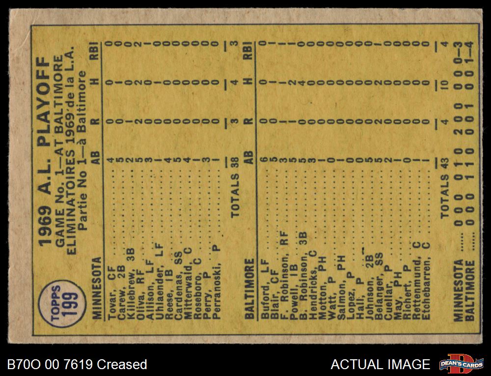 1970 O-Pee-Chee #199 1969 AL Playoff - Game 1 - Orioles Win Squeeker 3 - VG