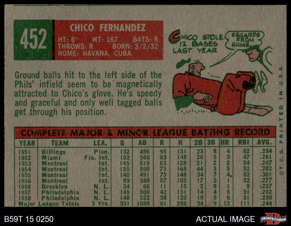 1959 Topps #452 Chico Fernandez 3 - VG