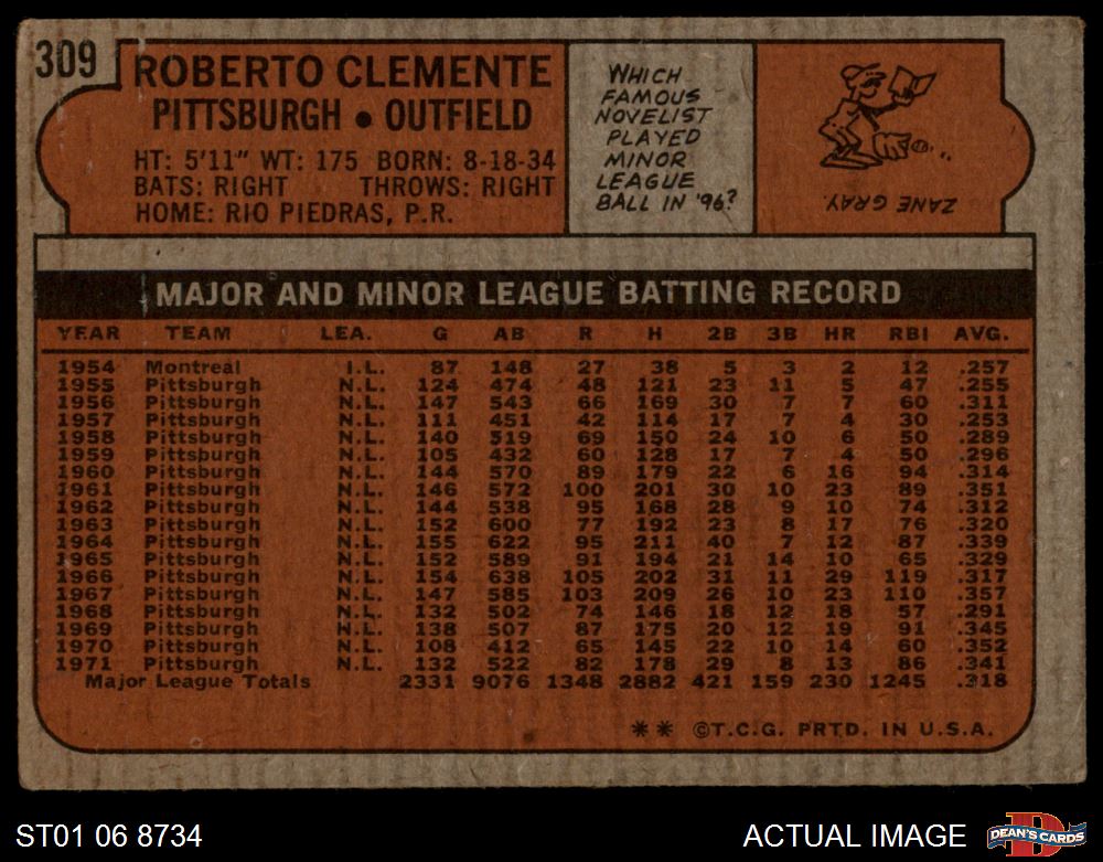 1972 Topps #309 Roberto Clemente 1.5 - FAIR