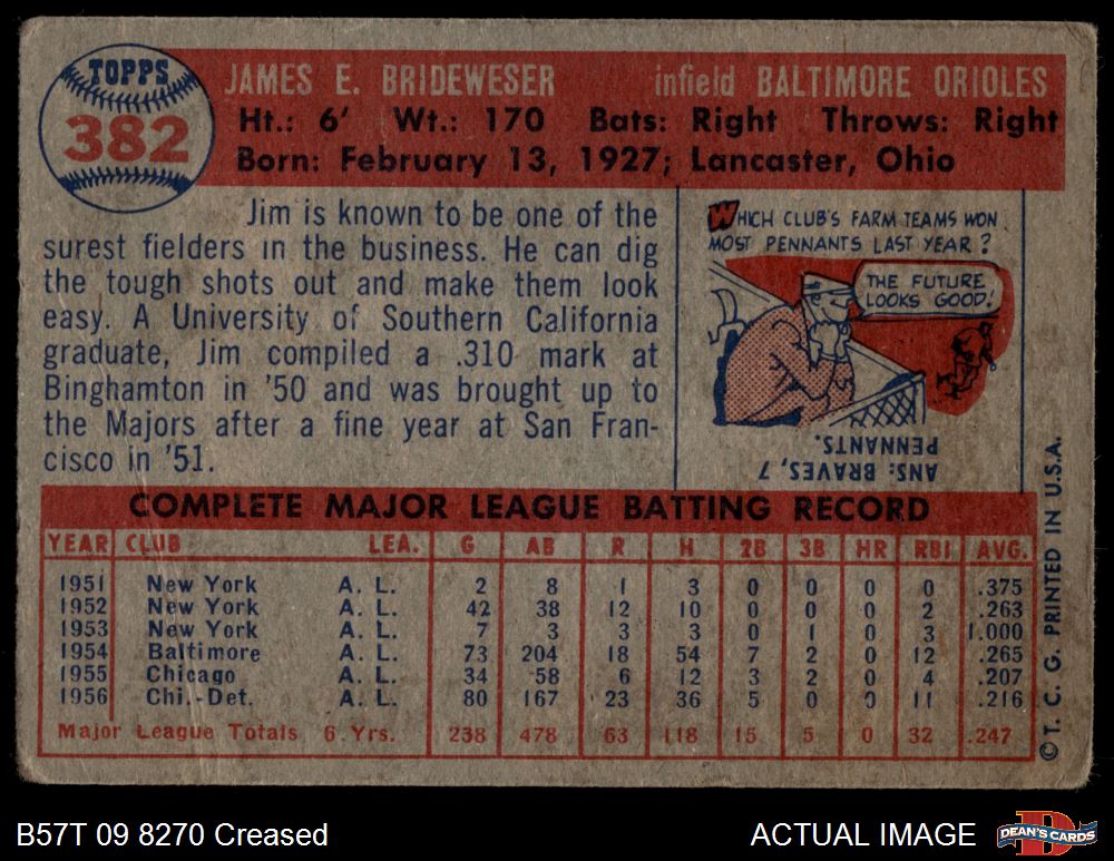 1957 Topps #382 Jim Brideweser 1 - POOR
