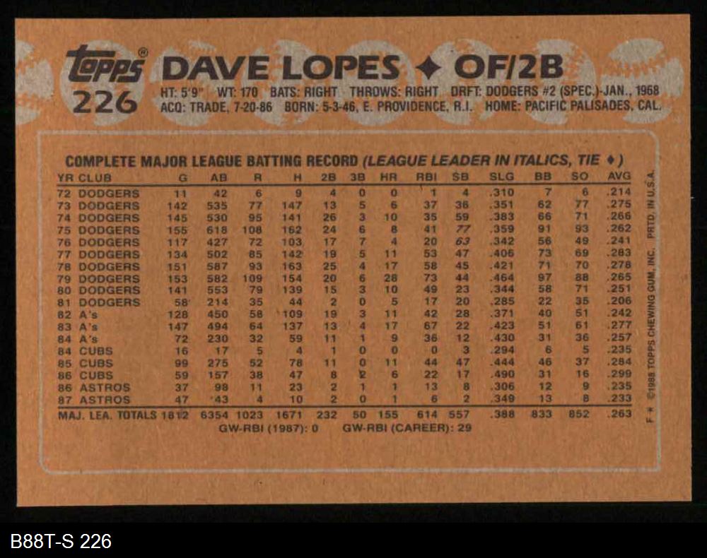 1988 Topps #226 Dave Lopes