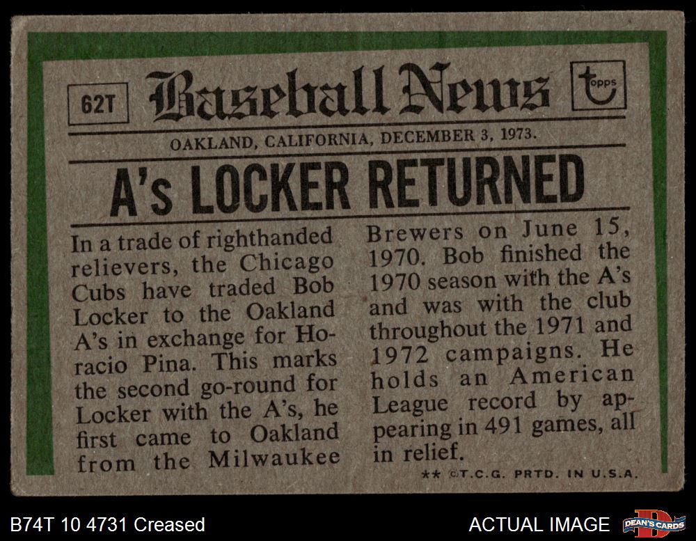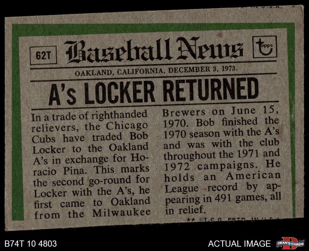 1974 Topps Baseball Cards (17,859 available)1974 Topps Traded Athletics (98 available)
