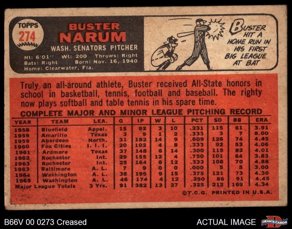 1966 Topps Venezuelan #274 Buster Narum 3 - VG