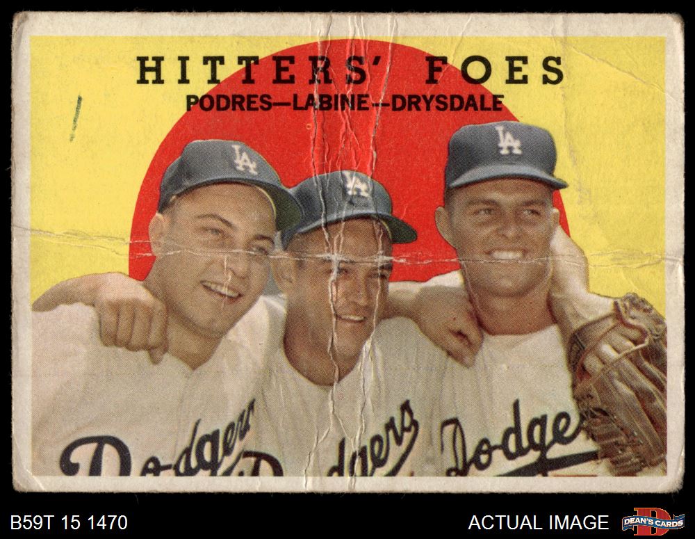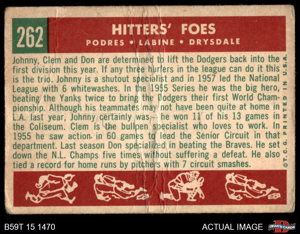 1959 Topps #262 - Don Drysdale / Clem Labine / Johnny Podres Hitters' Foes AUTHENTIC