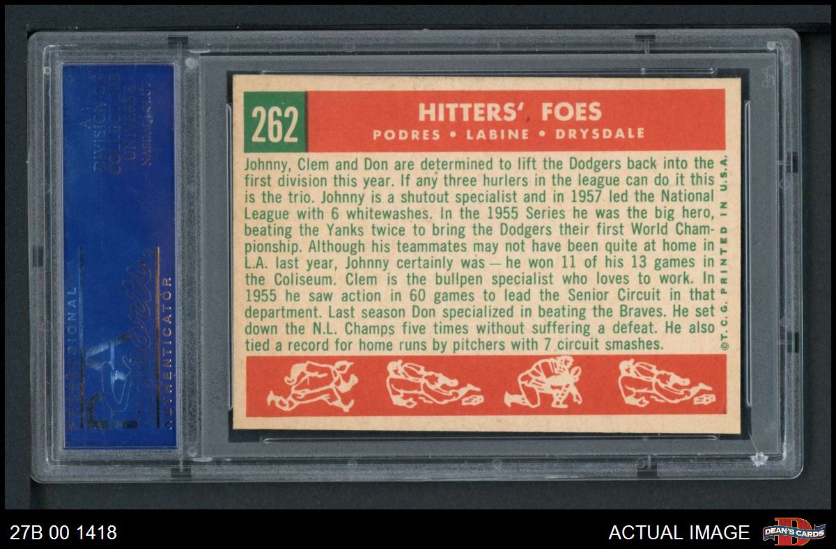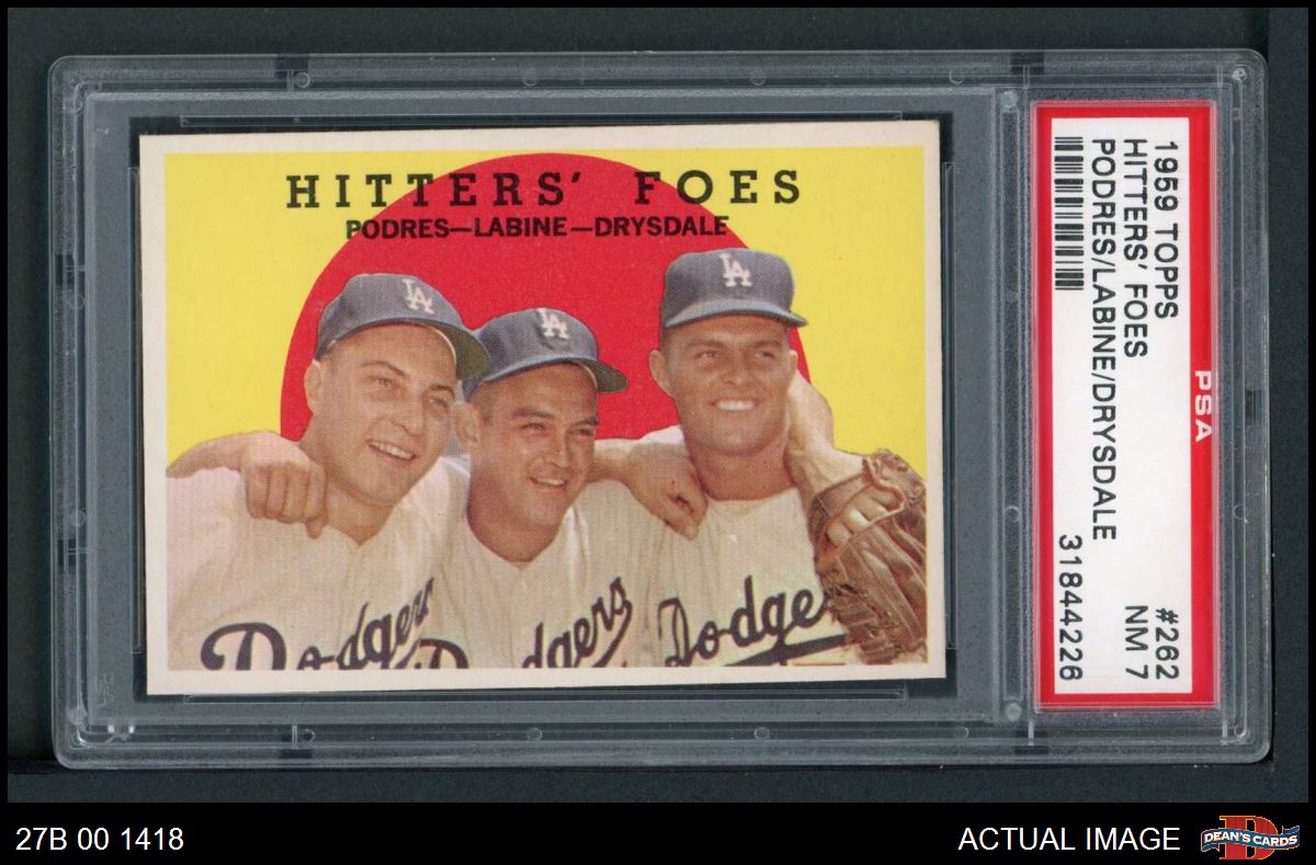 1959 Topps #262 - Don Drysdale / Clem Labine / Johnny Podres Hitters' Foes PSA 7 - NM