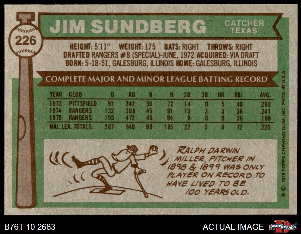 1976 Topps #226 Jim Sundberg 7 - NM